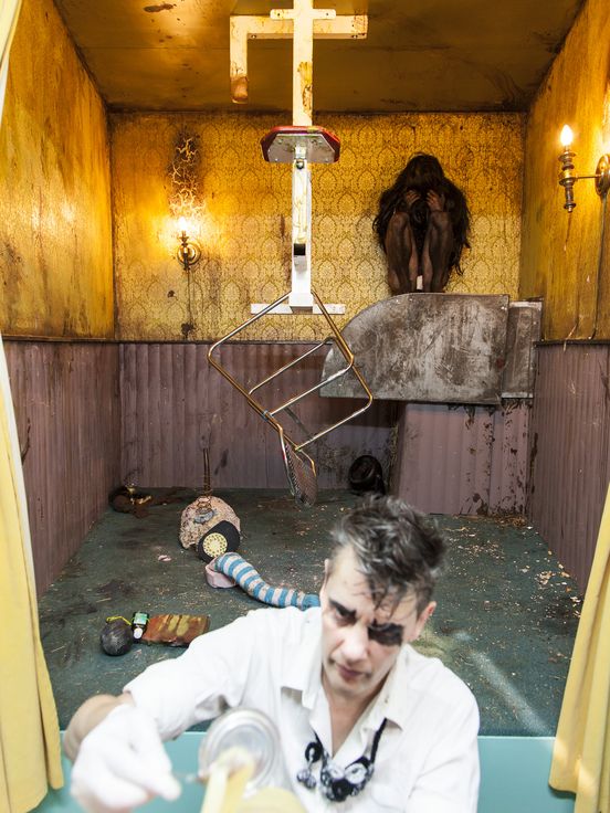 In seinen Werken agiert John Bock als Bildhauer, Zeichner, Autor, Aktionskünstler und Filmemacher. Die opulente Schau in der Berlinischen Galerie ist Freakshow, Bühne, Versuchslabor und Kino zugleich und überwältigt durch eine barocke Fülle an Bedeutungen. Objekte, Requisiten und Kostüme, die in den Filmen und Live-Aktionen zur Ausstellung zum Einsatz kommen, mutieren in seinem Kosmos zu unberechenbaren Wesen. Sie wuchern, stülpen sich aus oder bilden Tentakel und versuchen, Kontakt zum Besucher aufzunehmen. Jede Station erzählt eine eigene Geschichte. Zusammen bilden sie ein lockeres Gefüge, das wie ein Parcours funktioniert. Der Besucher bewegt sich mit Entdeckerlust hindurch und bringt zugleich sich selbst zur Aufführung.